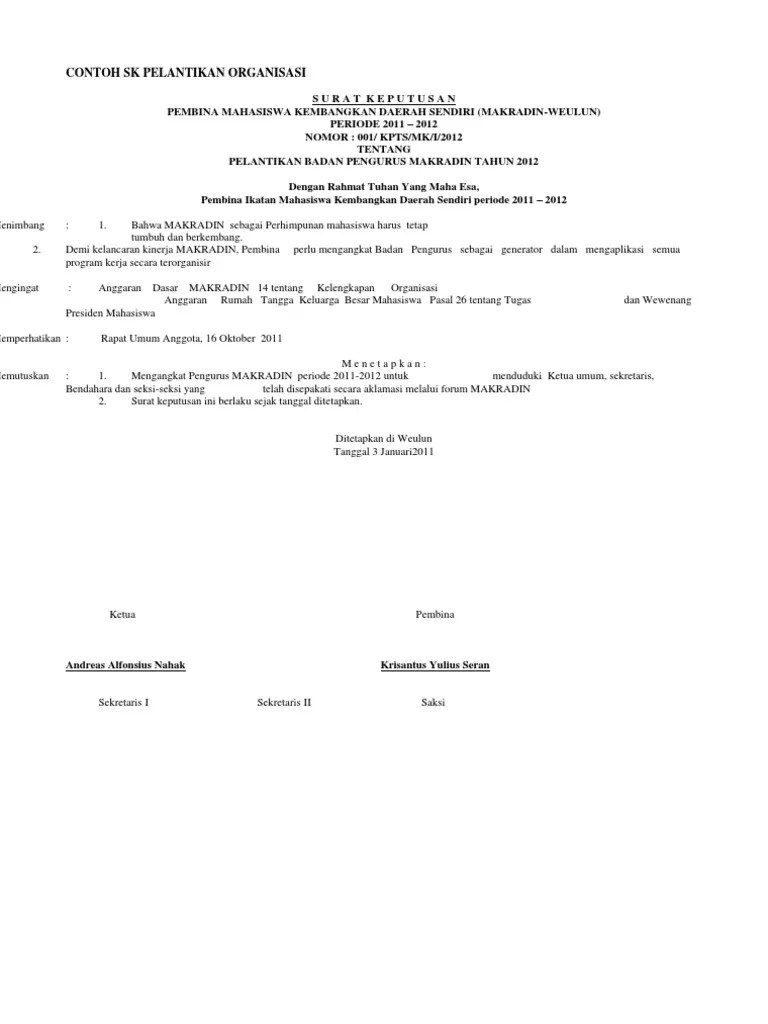 Merivisi susunan pengurus organisasi iscc yang ada dalam lampiran. Sk pendiri lsm putra sang fajar indonesia tentang pengangkatan dewan pengurus pusat. Kesatu" tersebut di atas kepada pengurus dpp ormas mkgr untuk diterbitkan surat keputusan penetapan pengurus dpd i. Sk ketua umum nomor 1028/iscc/kep/i/2018 menjadi seperti yang. 6 surat keputusan tentang susunan pengurus orkemas secara lengkap yang sah sesuai anggaran dasar dan anggaran rumah tangga.
